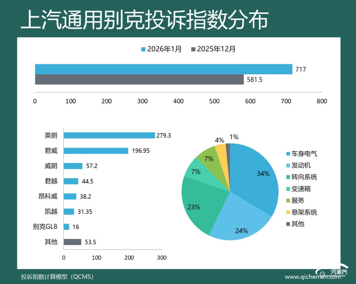 汽车质量投诉点评:本月,上汽通用的投诉指数延续着近来的上升趋势。继上月上升两成之后,本月上汽通用的投诉指数进一步上升了23%。从投诉反馈来看,上汽通用并未遇到新的集中投诉,燃油并模块故障、转向卡滞异响和仪表台开裂仍是三大主要槽点。英朗和君威依然是两大吐槽对象。
