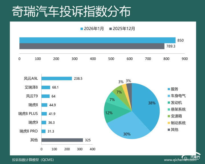第三名:奇瑞汽车 投诉指数 850