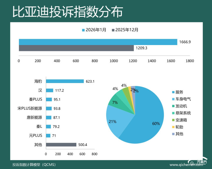 汽车质量投诉点评:2026年开年第一个月,比亚迪投诉指数环比大幅上升了36.86%,重新夺回了投诉“榜首”。这背后,以比亚迪海豹为首的多车车主集体投诉比亚迪未按承诺推送功能升级成了直接推手。据反馈,比亚迪方面宣称支持OTA升级哨兵模式,但迟迟未向用户推送,因此招致了2024款和2024款车型老车主的不满。
